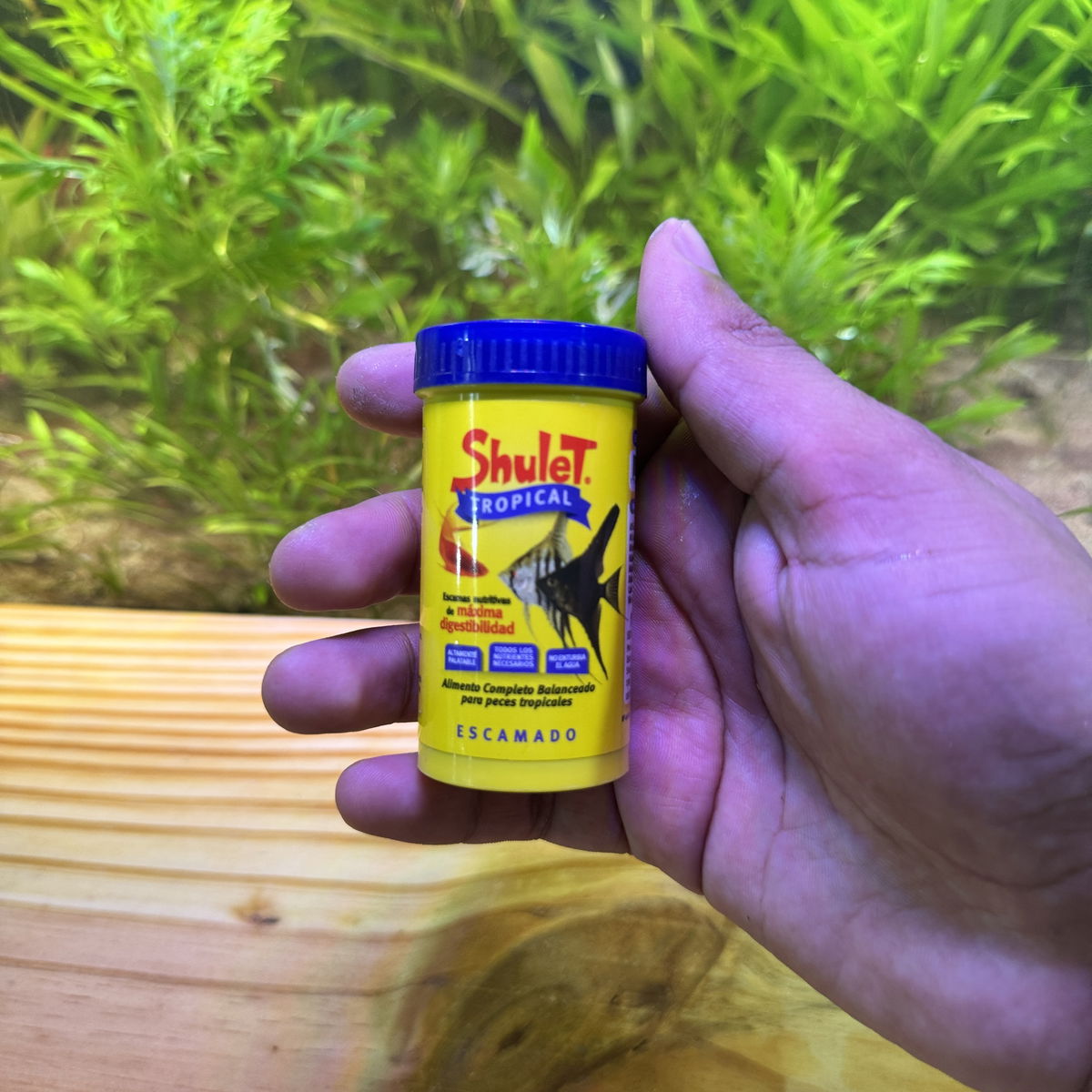 SHULET TROPICAL ESCAMADO es un alimento para peces de agua cálida o peces de agua tropical. Contiene los nutrientes necesarios para una alimentación completa y balanceada. Las escamas ofrecen fácil digestión y flotabilidad, asegurando la nutrición y minimizando los desechos. Incluye: - Vitamina E termo resistente - Vitamina C encapsulada - Astaxatina similar a la natural Este alimento está diseñado para contribuir a una vida saludable y realzar los colores de los peces.