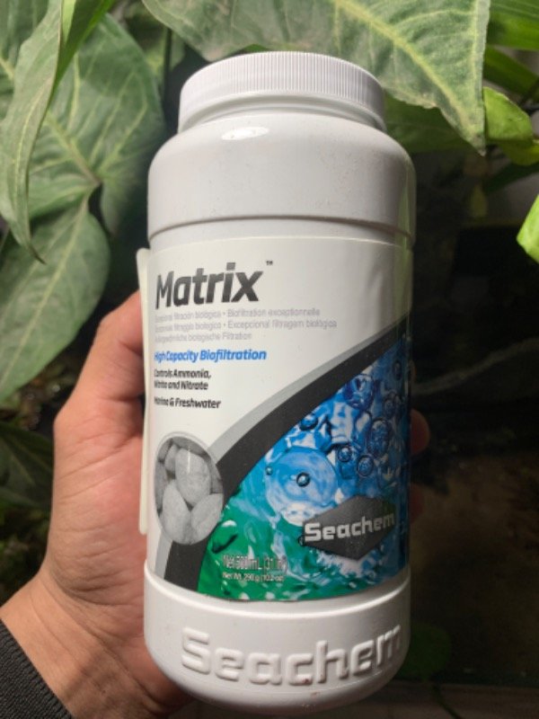 Matrix ™ Biofiltración de alta capacidad Controla el amoníaco, el nitrito y el nitrato. Altamente poroso - enorme área de superficie (> ~ 700 m 2 / L) Soporta especies de bacterias aeróbicas y anaeróbicas Visión general Matrix ™ es un biomedia de alta porosidad que proporciona una biofiltración eficiente para la eliminación de desechos nitrogenados. Matrix ™ es un sólido inorgánico poroso de unos 10 mm de diámetro. ¡Cada litro de Matrix ™ proporciona tanta superficie (> ~ 700 m 2 ) como 170 litros de bolas de plástico! Los biomateriales plásticos proporcionan solo un área de superficie externa, mientras que Matrix ™ proporciona un área de superficie macroporosa tanto externa como interna. Estos macroporos tienen el tamaño ideal para el apoyo de bacterias nitrificantes y desnitrificantes. Esto permite que Matrix ™, a diferencia de otras formas de biomedia, elimine el nitrato junto con el amoníaco y el nitrito, simultáneamente y en el mismo filtro. Matrix ™ es completamente inerte y no se descompone. No necesita ser reemplazado. Dado que la mayoría de las bacterias son internas, Matrix ™ puede enjuagarse cuando sea necesario sin dañar el filtro. Matrix ™ es compatible con todos los tipos de filtros húmedos o húmedos-secos. Direcciones Use 500 mL de Matrix ™ por cada 400 L (100 galones estadounidenses) ** de agua. Matrix ™ puede colocarse en cualquier tipo de filtro y es particularmente eficaz en un filtro de bote. Matrix ™ es lo suficientemente grande como para que no se requiera una bolsa de filtro para la mayoría de las aplicaciones. Matrix ™ funciona bien en sistemas de bandejas de goteo, pero es posible que el Pond Matrix ™ más grande sea más adecuado para tales aplicaciones. Úselo con Stability® para establecer más rápidamente el biofiltro. ** Esta dosis puede diferir de su empaque. Según estudios actualizados, hemos descubierto que Matrix ™ trata incluso más agua de lo que se afirmó anteriormente