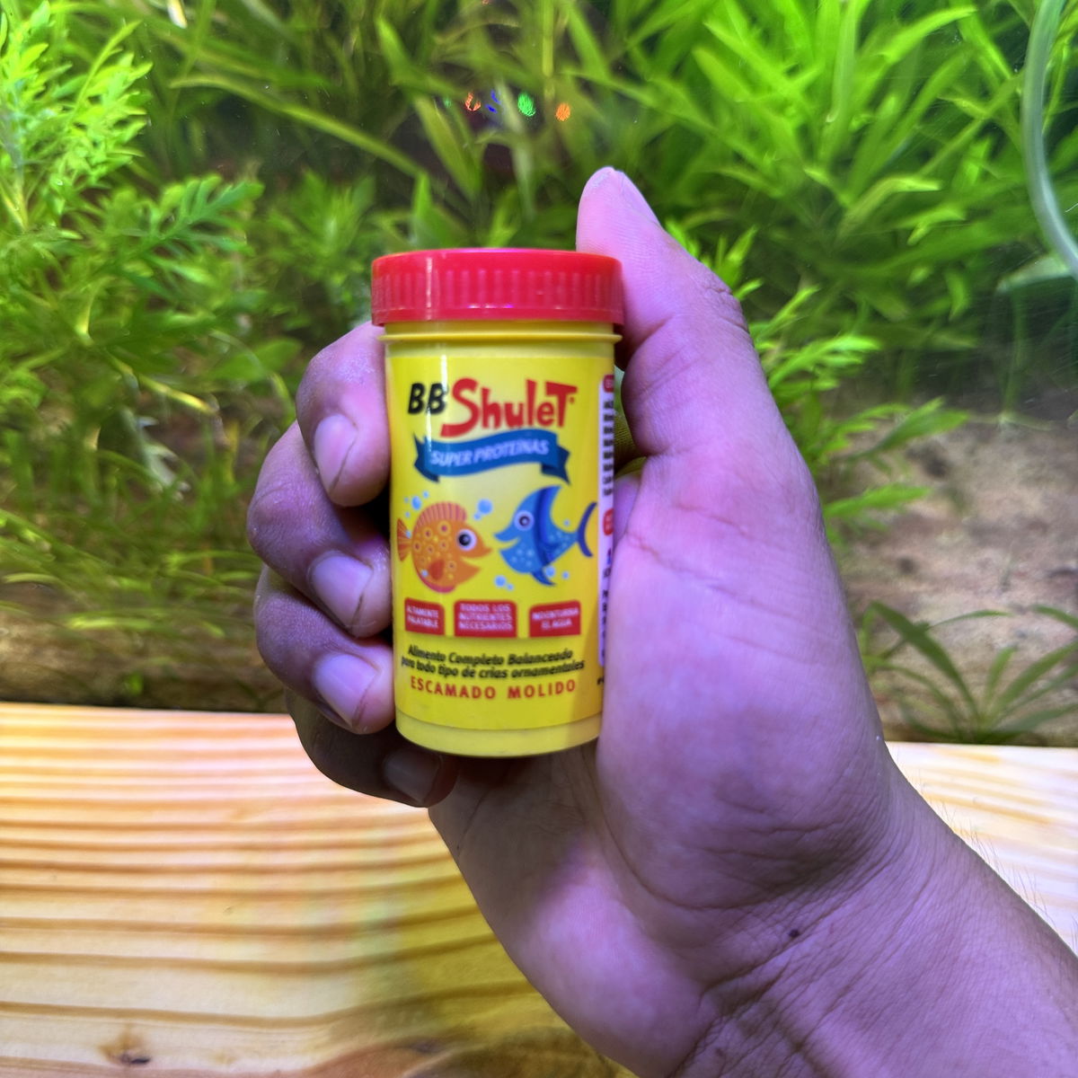 **Shulet BB Crias 28 g** es un alimento especialmente formulado para alimentar a las crías de peces de agua dulce. Con una presentación de 28 gramos, este alimento en forma de microgránulos está diseñado para satisfacer las necesidades nutricionales de los alevines en sus primeras etapas de crecimiento, promoviendo un desarrollo saludable, una buena digestión y una coloración óptima. Su fórmula rica en proteínas y nutrientes esenciales asegura una dieta equilibrada que favorece el crecimiento rápido y fuerte de los peces jóvenes. Además, los microgránulos son fácilmente consumidos por las crías, minimizando el desperdicio y ayudando a mantener el agua del acuario más limpia. **Shulet BB Crias 28 g** es una excelente opción para acuaristas que buscan una alimentación de calidad para los alevines de peces.