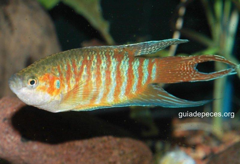 El Macropodus común (Macropodus opercularis) es un pez ornamental de agua dulce conocido por su colorido y su comportamiento activo. Su cuerpo alargado presenta una combinación de colores vibrantes, con tonos que varían entre azules, verdes y rojos, especialmente en los machos, que muestran colores más intensos, mientras que las hembras tienen colores más suaves. Este pez es ideal para acuarios de al menos 60 litros, donde puede nadar libremente, pero también disfruta de zonas con plantas y decoraciones que le ofrezcan refugios. Prefiere aguas ligeramente ácidas a neutras, con temperaturas entre 24 y 28 °C, y es un pez resistente que no requiere cuidados excesivos, aunque un buen sistema de filtración es importante para mantener la calidad del agua. Aunque es un pez pacífico con otras especies, el Macropodus común puede ser territorial y agresivo con su propia especie, especialmente durante la época de reproducción, por lo que se recomienda mantenerlo en acuarios con pocos individuos o con otras especies tranquilas y de tamaño similar. Alcanza un tamaño de 8 a 10 cm en su etapa adulta y tiene una dieta omnívora, aceptando tanto alimentos secos como vivos o congelados, tales como artemia, daphnia y larvas de mosquito. Su comportamiento activo, combinado con su coloración brillante y su resistencia, lo convierten en una excelente opción para acuarios de peces comunitarios o para quienes buscan un pez con personalidad y belleza.