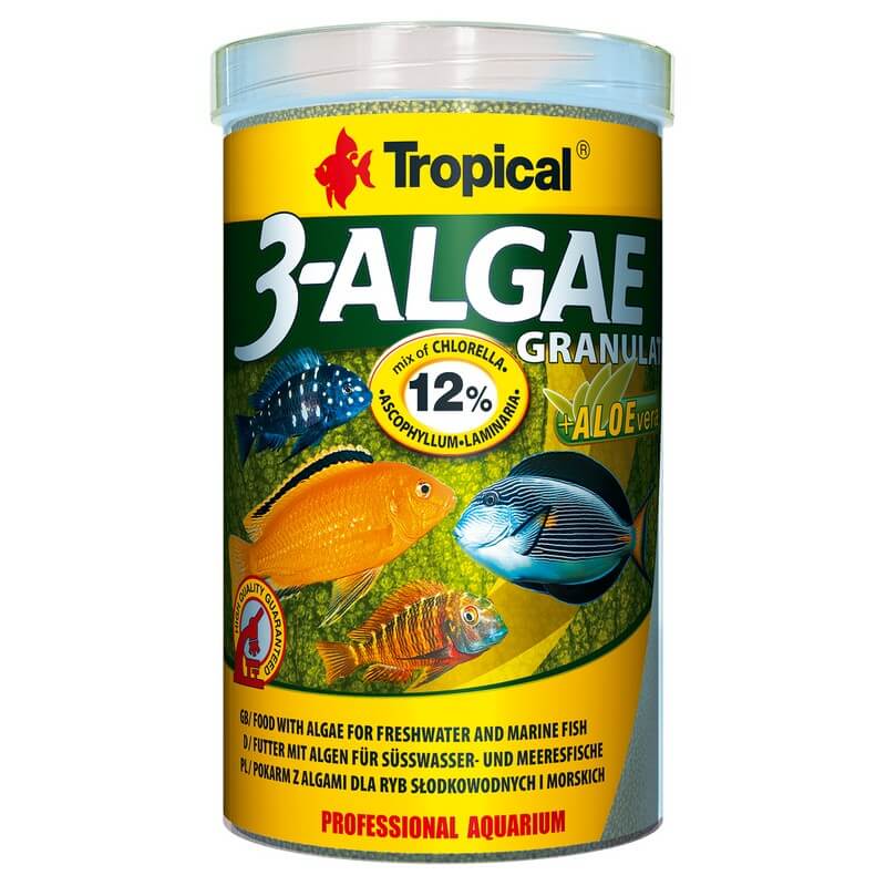 Tropical Algae Granulat es un alimento granulado de alta calidad especialmente formulado para peces herbívoros y omnívoros. Contiene un alto porcentaje de algas, lo que favorece una alimentación equilibrada, fortalece el sistema inmunológico y mejora la coloración natural de los peces.