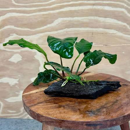 La Anubia coffeefolia es una planta de crecimiento lento ideal para la zona media o delantera del acuario. Sus hojas gruesas y onduladas recuerdan a las hojas del cafeto, de donde proviene su nombre, aportando textura y un aspecto muy natural al paisaje acuático.