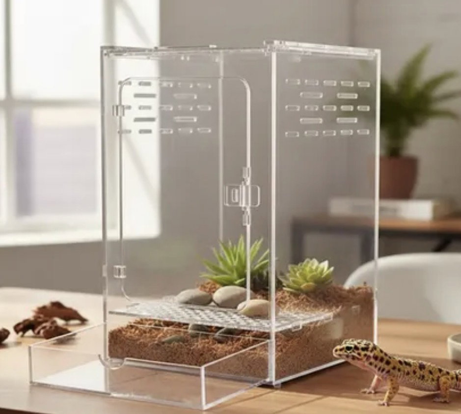Contenedor Acrílico Exhibidor para Geckos / Anolis / Tortugas / Ranas COV-P01H