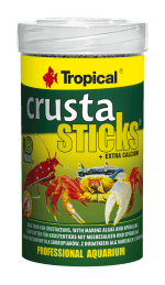 Tropical Crusta Sticks es un alimento completo en sticks hundibles especialmente formulado para gambas, camarones y otros crustáceos de acuario. Su fórmula con algas y espirulina aporta nutrientes esenciales y ayuda a mantener crustáceos saludables y con colores más intensos.
