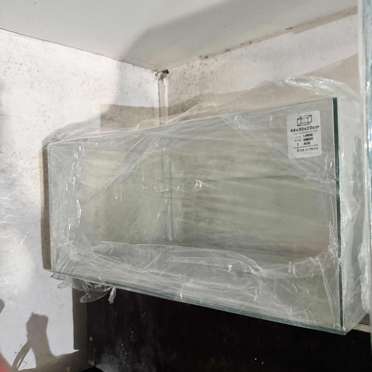 Pecera de Vidrio Nueva, incluye base de telgopor y vinilo negro para el fondo.