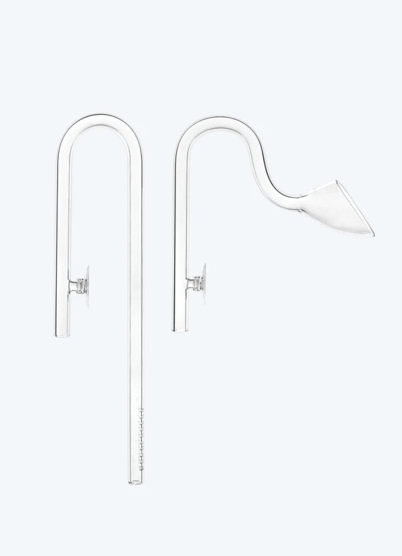 La Entrada y Salida de Botellón de vidrio en tamaño grande es un accesorio ideal para sistemas de filtración externa en acuarios. Su diseño tipo “lily pipe” permite una circulación eficiente y suave del agua, manteniendo una estética limpia y natural dentro del acuario, especialmente en acuarios plantados.