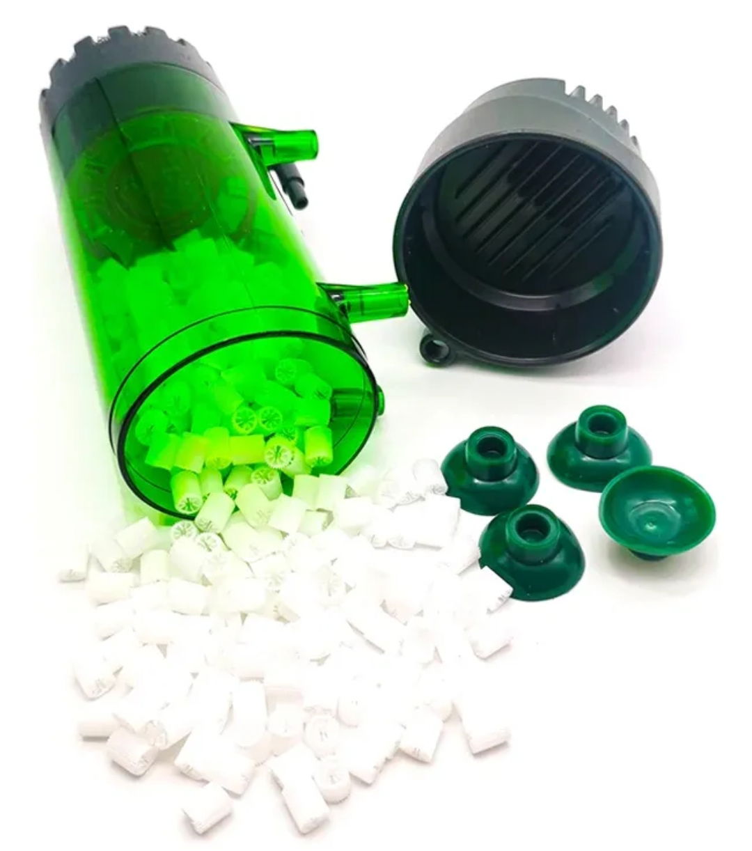 El filtro esponja con reactor K1 combina filtración mecánica y biológica avanzada en un solo equipo. Su sistema incorpora esponja filtrante y un reactor con material K1 móvil, aumentando la superficie para bacterias beneficiosas y mejorando la estabilidad del acuario.
