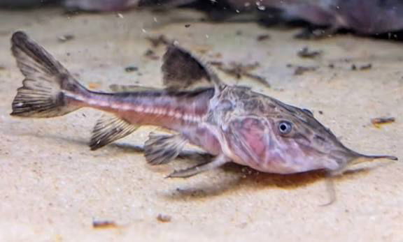 Tranquilo y principalmente nocturno. Durante el día suele permanecer en el fondo o bajo troncos y refugios, y por la noche se vuelve más activo recorriendo el acuario en busca de alimento.