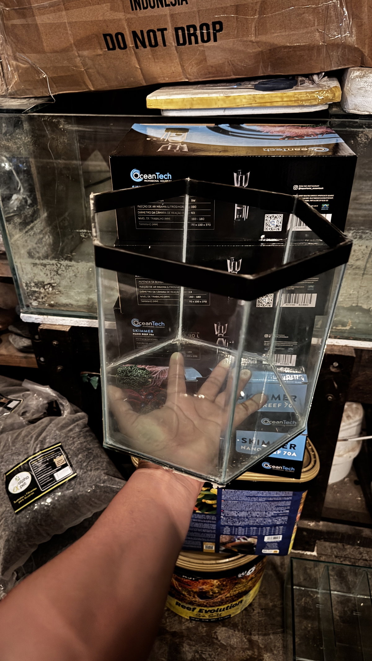 Es un recipiente compacto y decorativo, ideal para pequeños peces, plantas acuáticas o como elemento ornamental. Su diseño hexagonal ofrece una vista panorámica atractiva, perfecta para espacios reducidos.