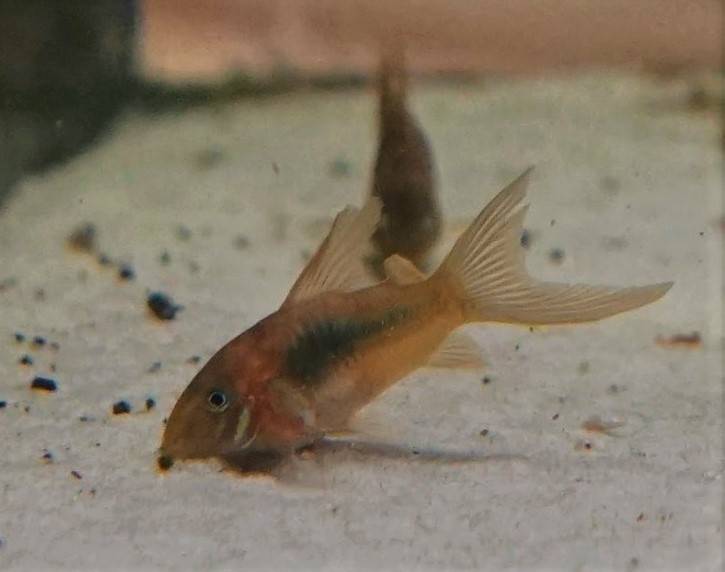 La Corydora aeneus velifera es una variante de la popular corydora bronceada, reconocida por su tamaño mediano (alcanza hasta 7 cm) y aletas más largas y elegantes, especialmente las pectorales y dorsales, que le dan un aspecto más llamativo en el acuario. Es un pez de fondo pacífico y sociable, ideal para acuarios comunitarios, que prefiere estar en grupos de al menos 4 o 5 ejemplares para sentirse seguro y mostrar su comportamiento natural.