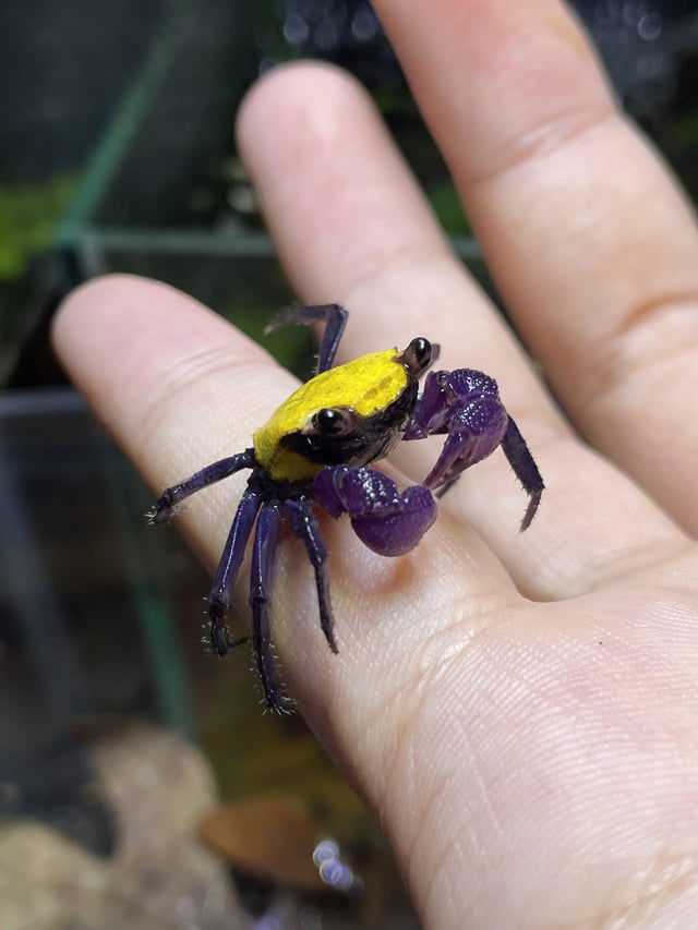 El Cangrejo Yellow Vampiro es un pequeño cangrejo terrestre del género Geosesarma, famoso por su aspecto exótico y sus intensos ojos amarillos brillantes que contrastan con su caparazón oscuro. Es ideal para acuarios tipo paludario o terrarios húmedos con zonas acuáticas poco profundas. Su tamaño compacto, comportamiento curioso y apariencia llamativa lo convierten en una opción única para quienes buscan un animal diferente y de bajo mantenimiento.