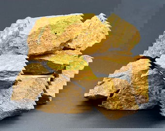 - Roca 100% natural con vetas y tonos mostaza únicos.