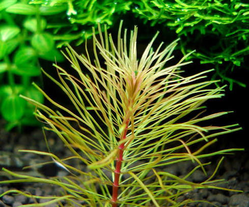 La Rotala Bangladesh es una planta de tallo muy atractiva y poco común, ideal para la zona media o trasera del acuario. Presenta hojas finas y alargadas que adquieren tonos verdes en condiciones normales, y matices rojizos o anaranjados bajo buena iluminación, aportando un aspecto delicado y elegante al paisaje acuático.