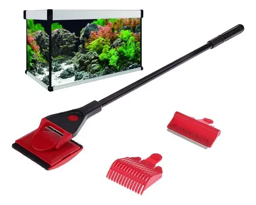 El limpiador metálico 3 en 1 de 55 cm es una herramienta completa para la limpieza eficiente del acuario sin meter las manos. Integra cuchilla tipo Gillette para algas duras, esponja para suciedad general y rastrillo para restos adheridos, ofreciendo control y alcance en acuarios medianos y grandes.