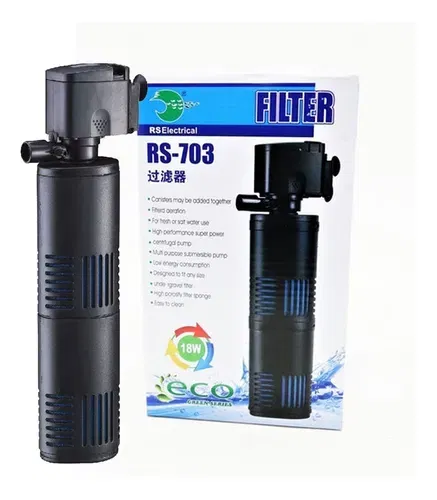 El filtro interno RS703 es un equipo potente y eficiente para acuarios medianos y grandes. Con un caudal de 1500 litros por hora, ofrece filtración mecánica y biológica constante, manteniendo el agua clara, bien oxigenada y con buena circulación.
