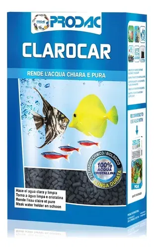 Clarocar de Prodac es un material filtrante químico de alta eficacia formulado para eliminar coloración amarillenta, impurezas disueltas y restos orgánicos del agua del acuario. Ayuda a recuperar agua cristalina de forma rápida y segura, sin alterar los parámetros cuando se usa correctamente.