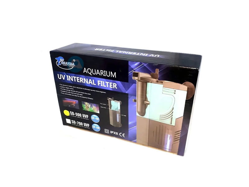 El filtro interno SD2500UV de Shanda integra filtración mecánica y biológica con esterilización UV, ofreciendo máxima potencia para mantener el agua cristalina y estable. Con un caudal de 2500 L/h, está diseñado para acuarios grandes o sistemas con alta carga biológica, controlando eficazmente agua verde, bacterias en suspensión y patógenos.