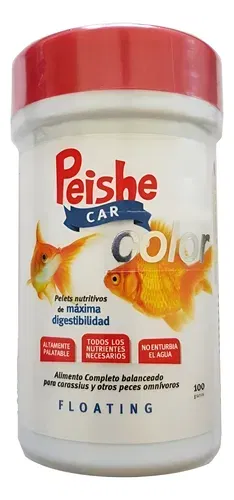 SHULET PEISHE CAR COLOR - Hace que tus peces mejoren su color. - Alimento completo: contiene la totalidad de los nutrientes necesarios y en su justa proporción. - Flotabilidad prolongada: optimiza el control de la dosificación, evitando el suministro de alimento en exceso. - Máxima resistencia estructural: minimiza la formación de polvo, como asi tambien el pasaje de nutrientes desde el alimento al agua, ya que el pellet posee una matriz tridimensional de alta resistencia. - Alta palatabilidad: contiene resaltadores naturales , haciendo a este alimento mas sabroso y atractivo para sus peces tropicales. - Elevada digestibilidad: Maximiza el aprovechamiento a nivel intestinal de los nutrientes contenidos en el alimento, minimizando los desechos. - Composición homogénea de cada uno en los pellets - Materias primas: Se utilizan solo ingredientes que sean totalmente naturales de máxima calidad nutritiva y que cumplan los mas altos estrictos estándares higiénico-sanitarios.