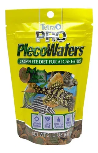 Tetra Pleco Wafers de Tetra es un alimento especialmente formulado para peces de fondo herbívoros y omnívoros, como plecos y otros loricáridos. Sus pastillas que se hunden rápidamente permiten que los peces se alimenten de forma natural en el fondo del acuario.